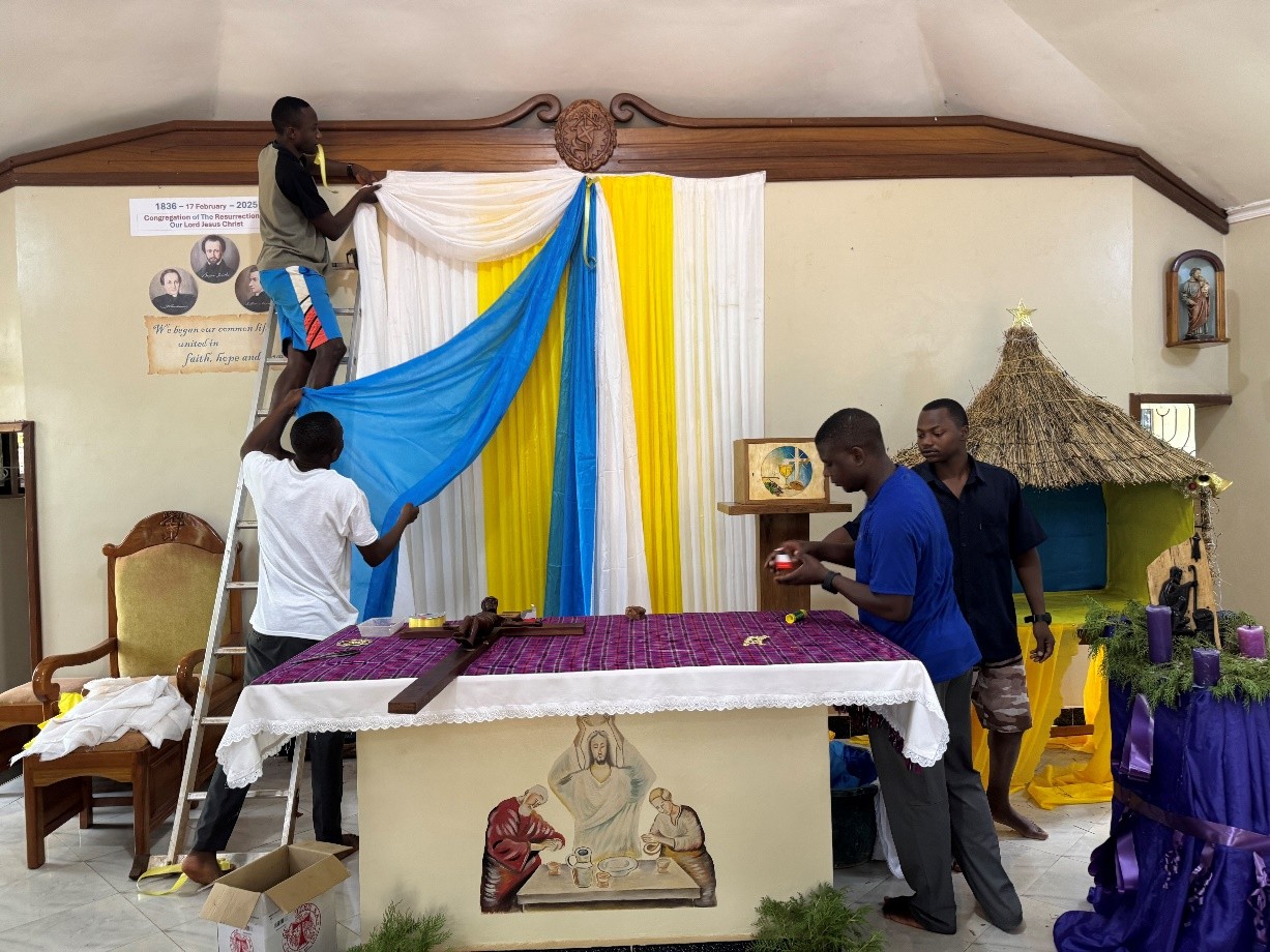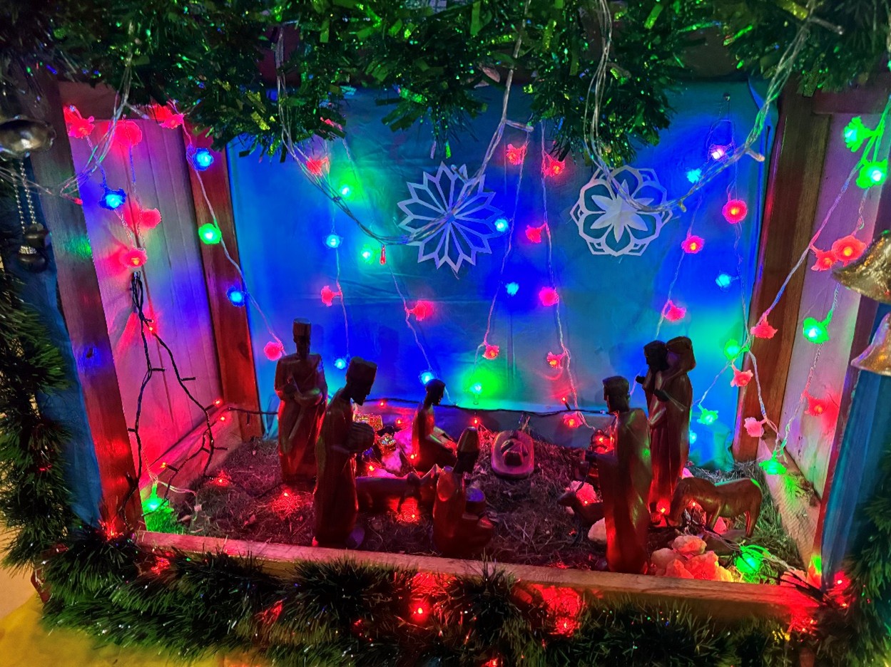 Another manger scene was constructed in the dining room by Diof, Saulo, Denis, and George.